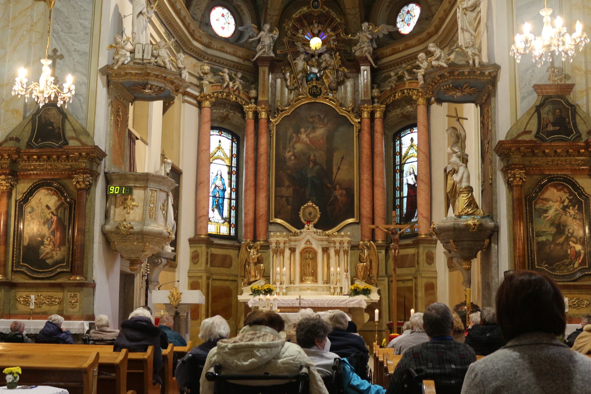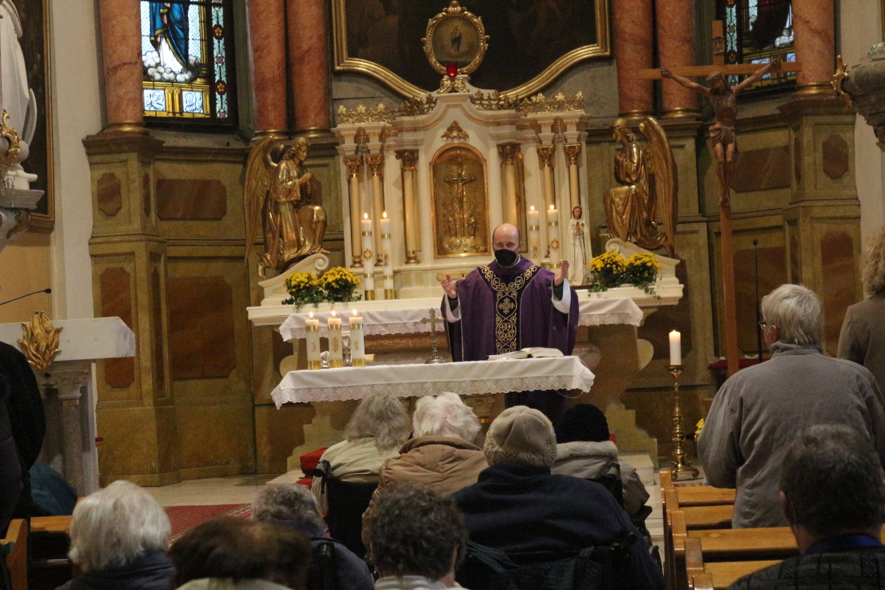 Dnes jako každý rok proběhla v místním kostele svatého Jakuba, který je od našeho Domova vzdálen „co by kamenem dohodil" Dušičková mše. I přes dušičkové počasí byl zájem o tuto mši ze strany uživatelů jako vždy obrovský. Jsme moc rádi, že pan farář P. ThLic. Tomáš Klíč si pravidelně nachází čas na naše uživatele a přichází za nimi v rámci našich Křesťanských okének rozmlouvat nejen o víře. Děkujeme.