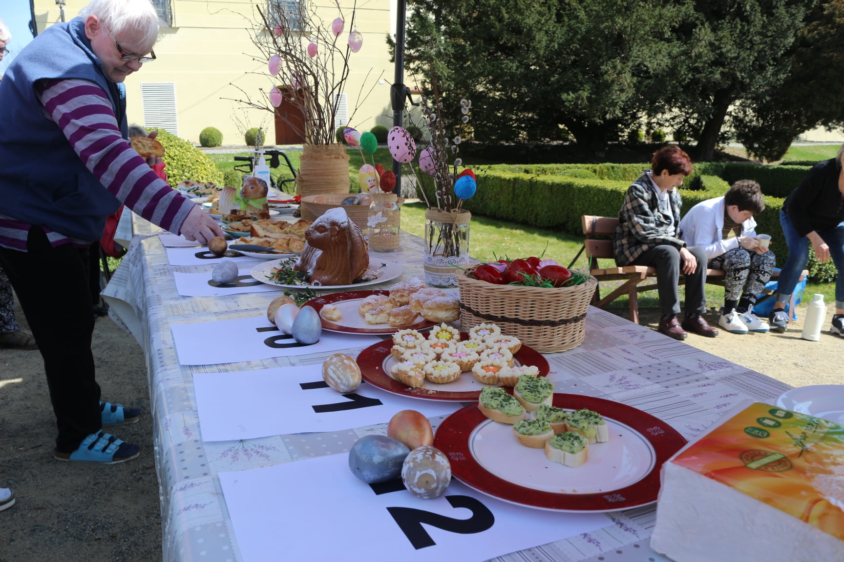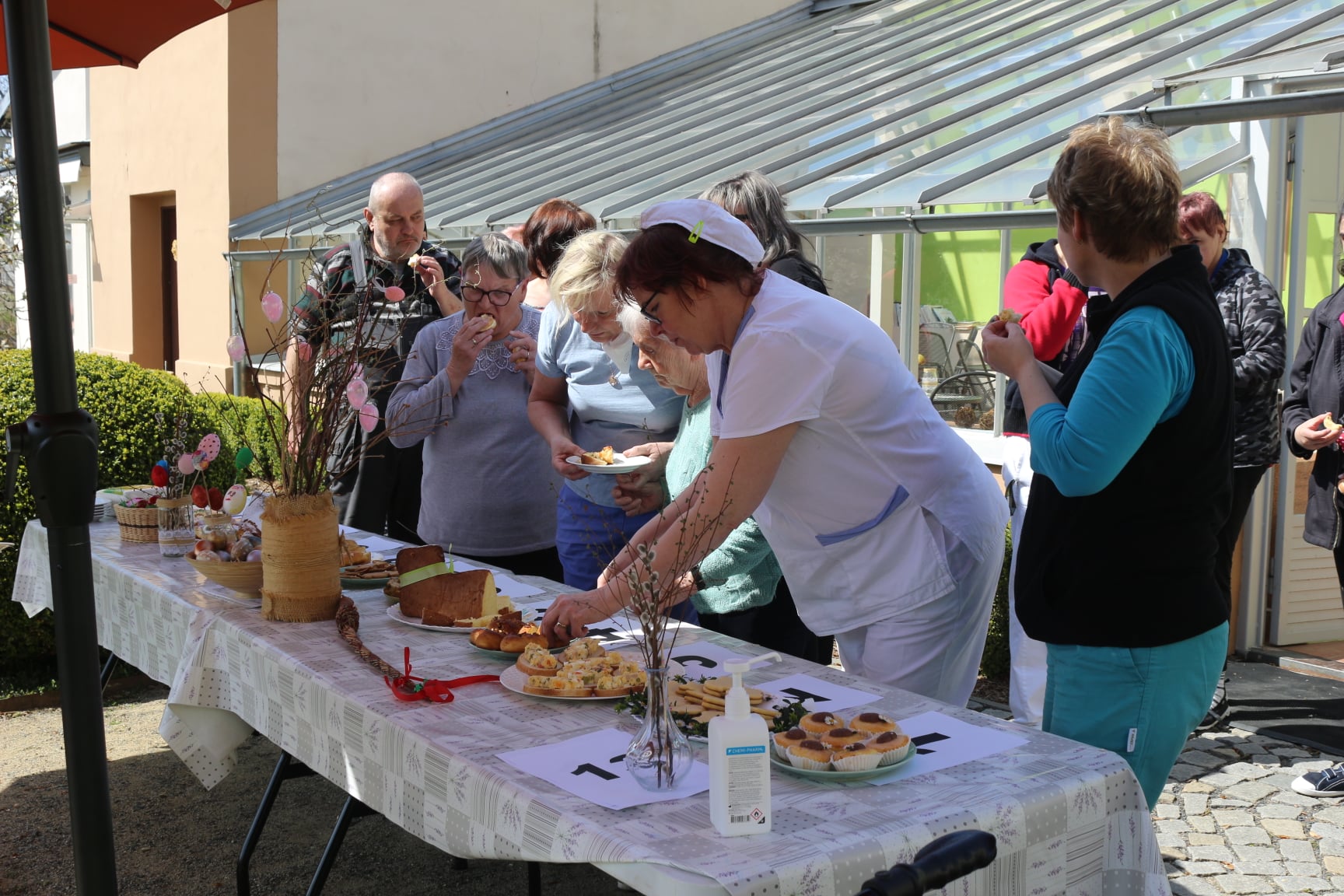 Dnes jsme pro naše uživatele uspořádali soutěž o nejlepší velikonoční pokrm. Pravidla byla jednoduchá: dopoledne společnými silami vytvořit jakýkoliv pokrm spojený s Velikonoci a odpoledne pak přinést soutěžní vzorek před porotu. Do soutěže se zapojily všechny naše domovy, celkem se sešlo 12 soutěžních pokrmů. Porota složená ze zástupců všech domovů, úseků, dokonce i opatrovníků, následně vybrala jednoho vítěze. Letošní vítězství patří našim seniorkám, kterým ještě jednou gratulujeme.