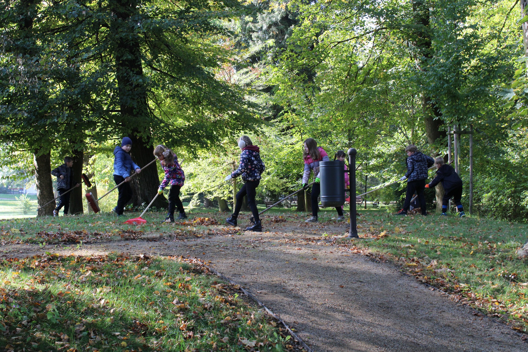 Dnes díky téměř 50ti dětem a paní učitelkám se podařilo v našem Zámeckém parku udělat pořádný kus práce.