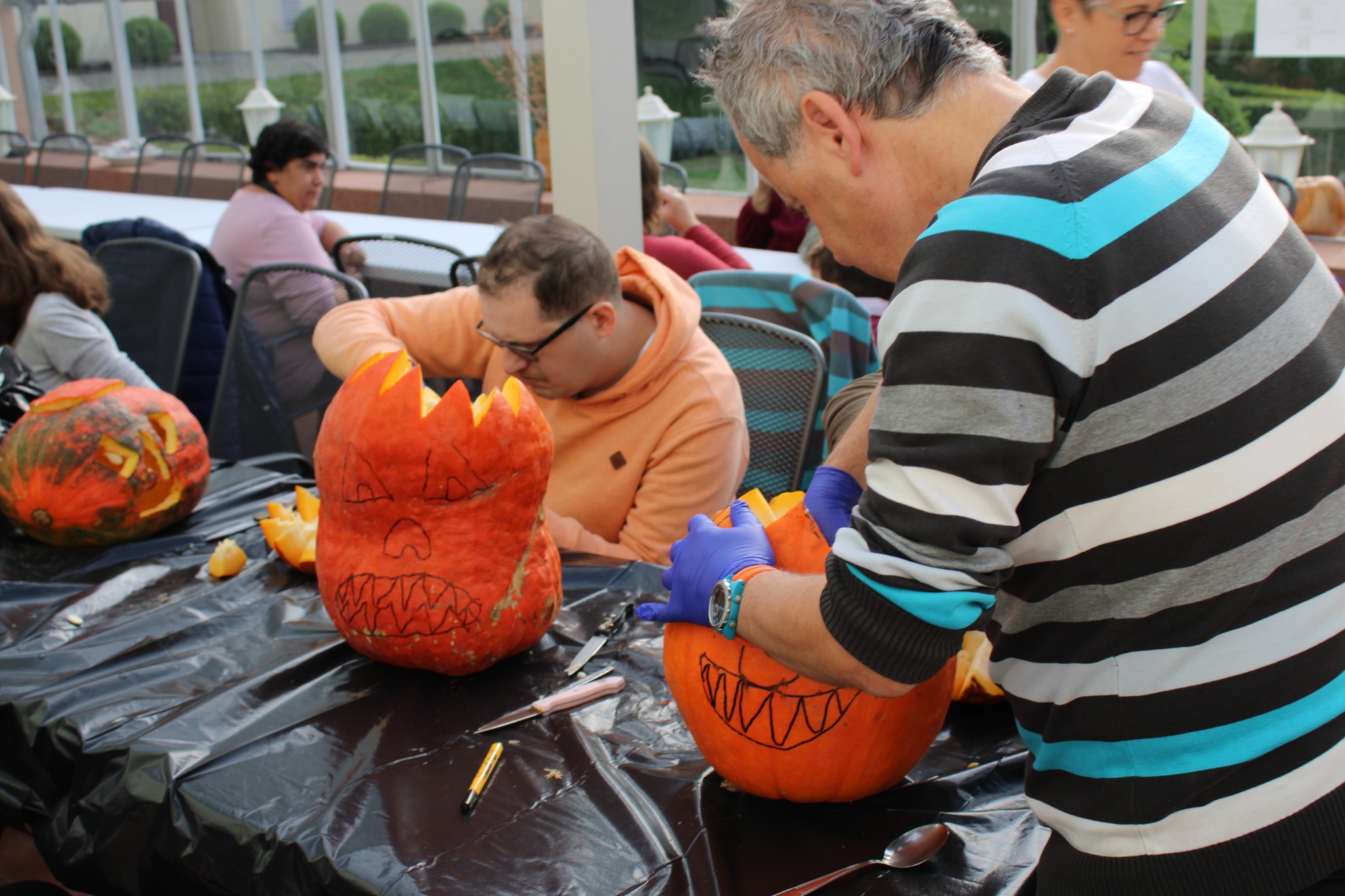 26. říjen připadá na Národní den dýní. Dnes k nám přijeli kamarádi ze Spolusetkávání Přerov, s kterými jsme společně několik dýní vydlabali. Stále nám však spoustu dýní zbývá, takže s dlabáním ještě nekončíme.