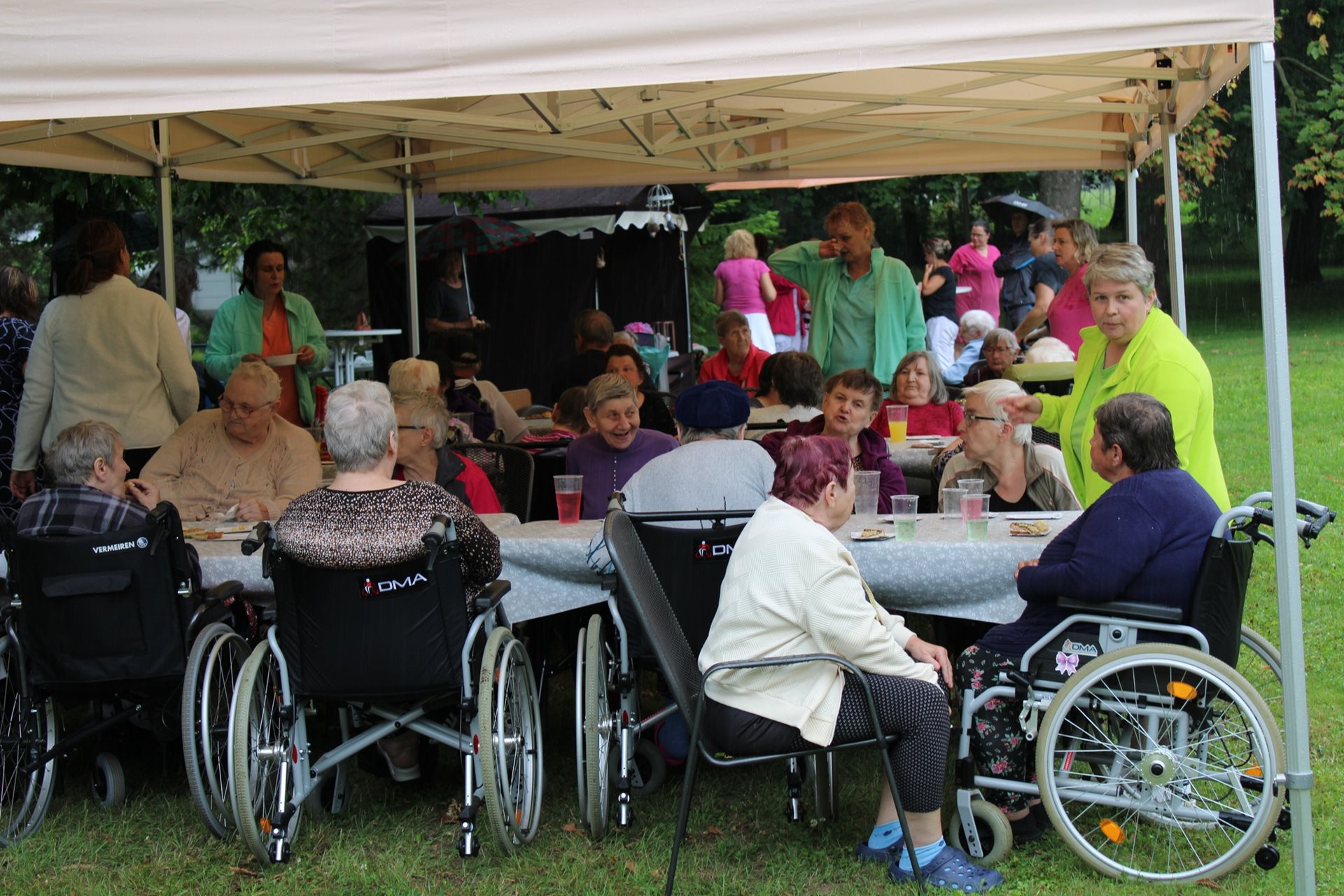 Včerejší 5. ročník našich tradičních Zámeckých hodů se sice nesl ve znamení dešťových kapek, ale rozhodně nás to neodradilo! Chtěli bychom moc poděkovat všem, kteří se na organizaci této akce podíleli – od šikovných týmů jednotlivých domovů, kteří připravili úžasné dobroty a papírové kytičky do soutěží až po ty, kteří zajistili celkové zázemí. A hlavně obrovské díky Vám všem, kteří jste dorazili a strávili s námi příjemné odpoledne v zámeckém parku, navzdory počasí! Vaše podpora a dobrá nálada nás moc potěšila.