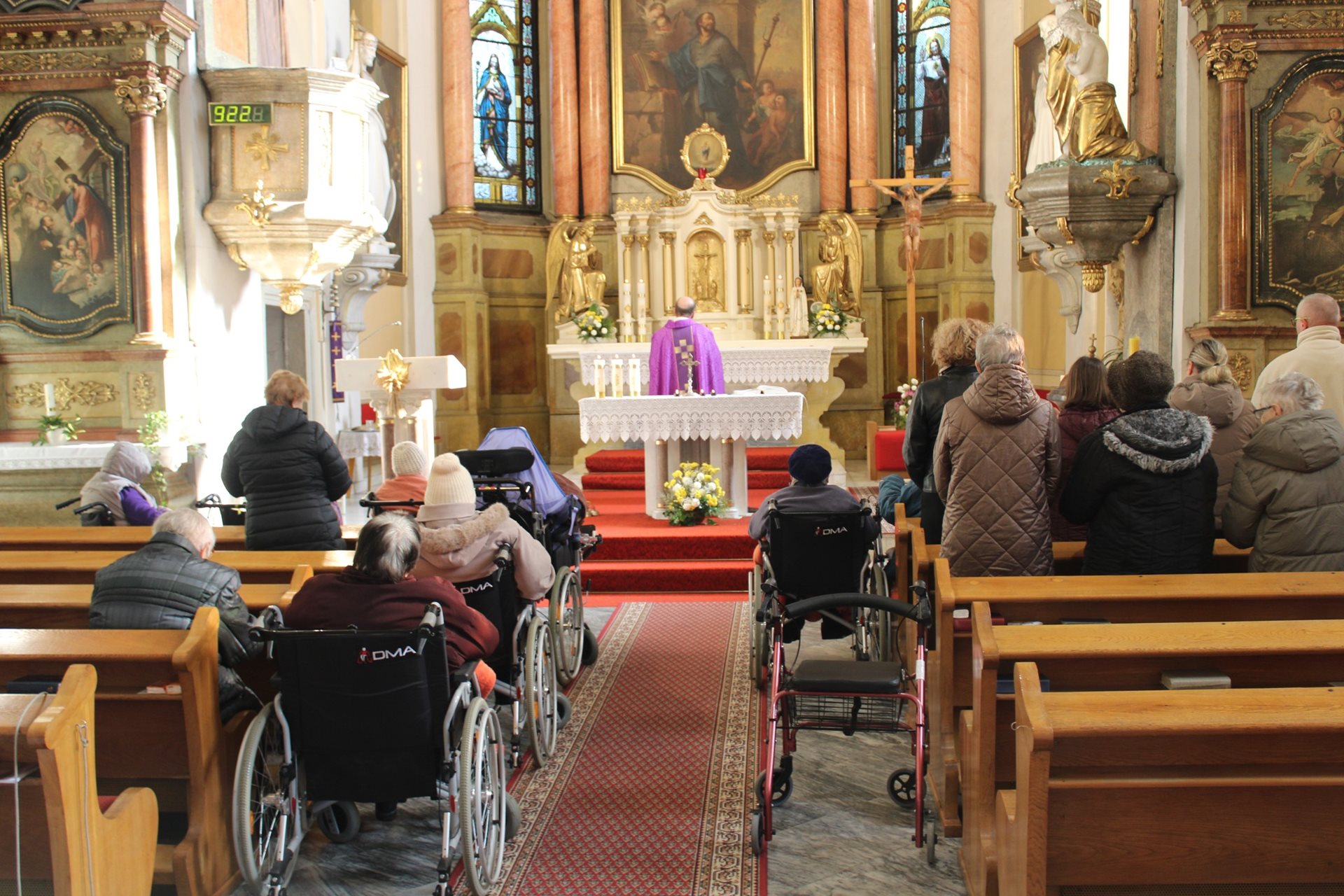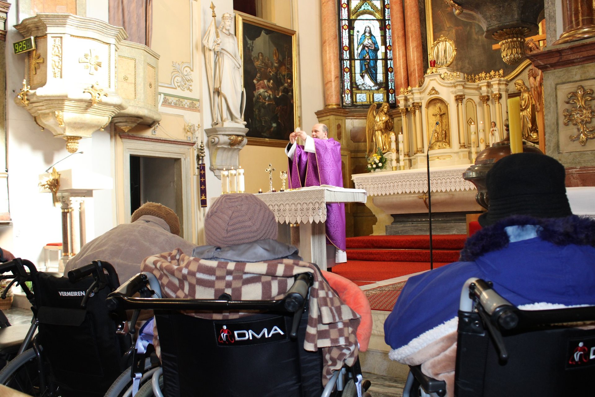 Dnes jako každý rok proběhla v místním kostele svatého Jakuba, který je od našeho Domova vzdálen „co by kamenem dohodil" Dušičková mše...