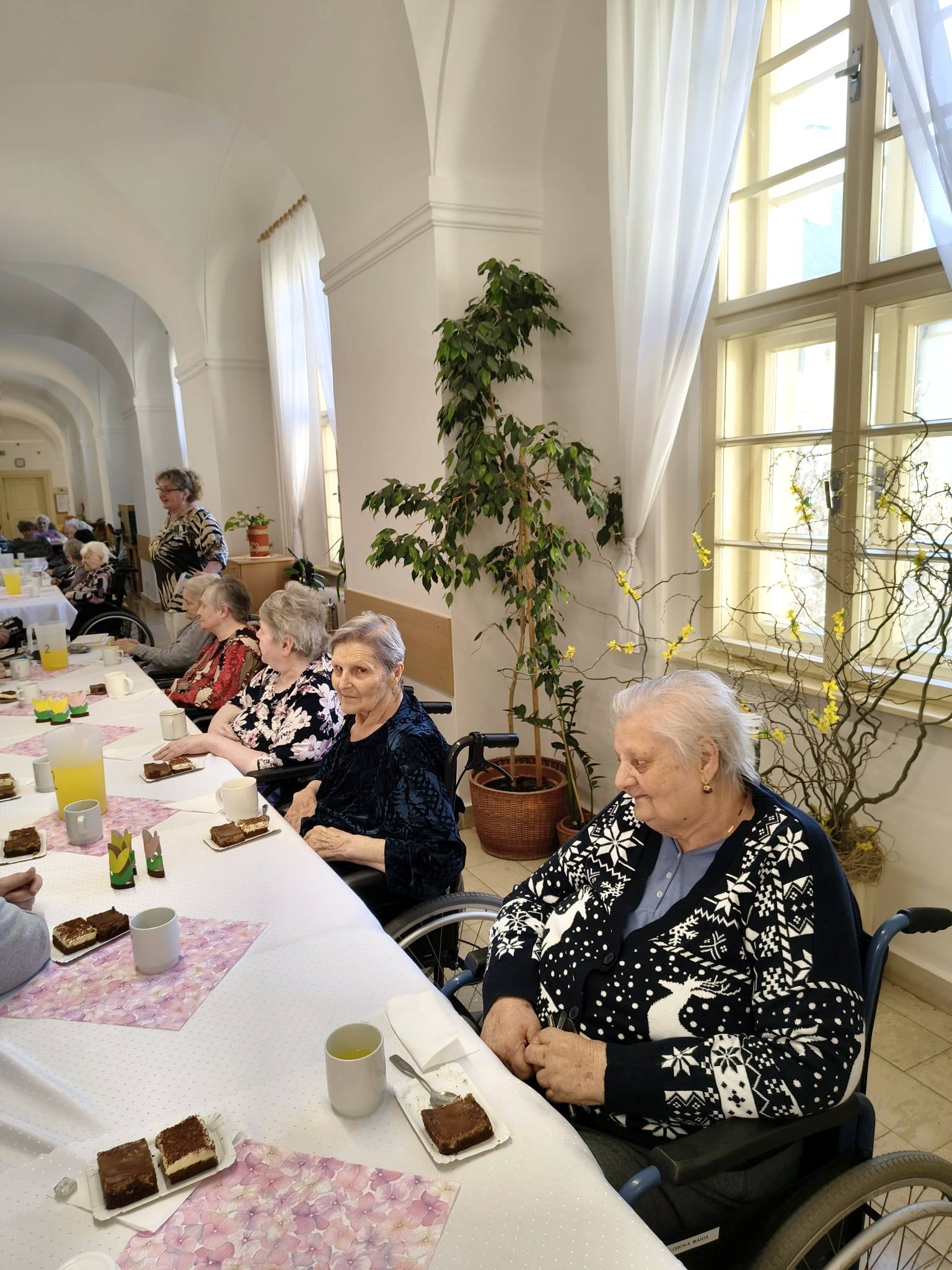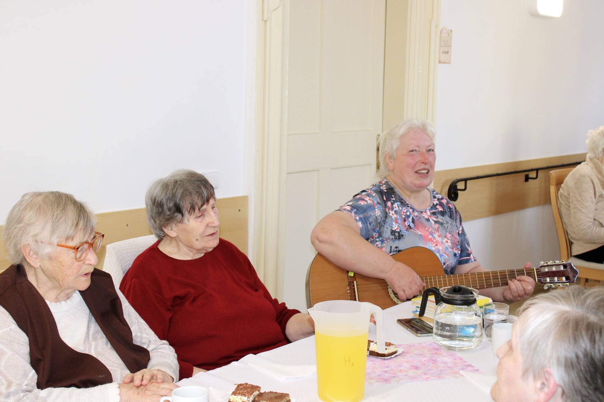 Naše klientky jsme potěšily malým posezením k příležitosti MDŽ. Nechyběl výborný koláč Labužník, který měl velký úspěch. O krásnou atmosféru se postarala naše bývalá kolegyně Marcelka, která si s námi zazpívala a zahrála na kytaru.