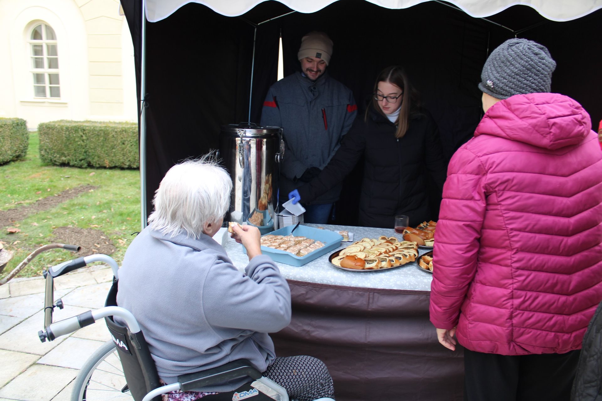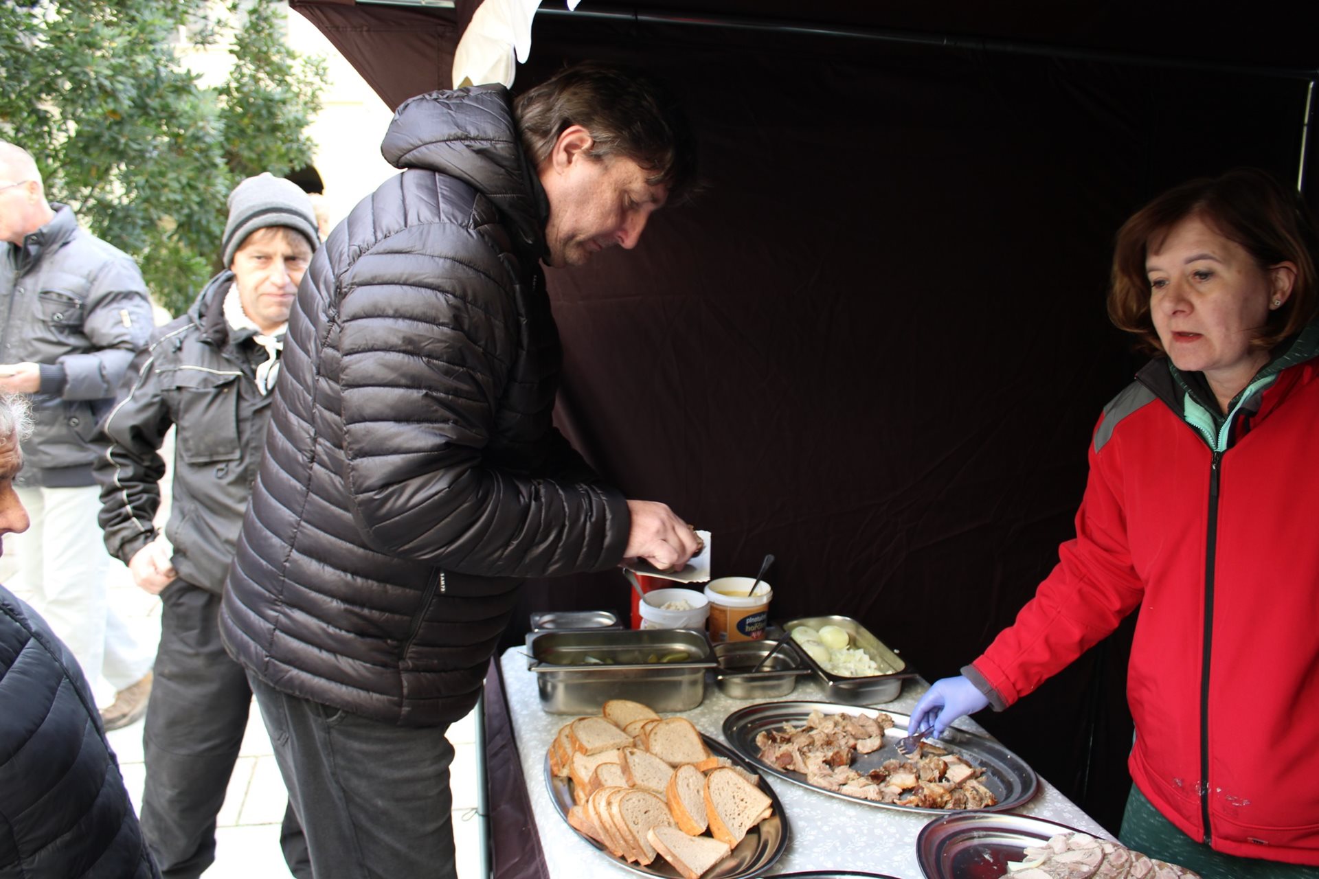 Dnes dopoledne na našem nádvoří proběhla každoroční akce: Ochutnávka zabijačkových specialit. Krom masa, jitrnic a tlačenky měli možnost naši klienti a zaměstnanci ochutnat i něco sladkého a samozřejmě nechyběl ani horký čaj na zahřátí. Přesně za týden (28.11.) nás čeká poslední velká akce v tomto roce a tou je Rozsvěcování vánočního stromu a Den otevřených dveří. Těšíme se na případnou Vaši návštěvu.