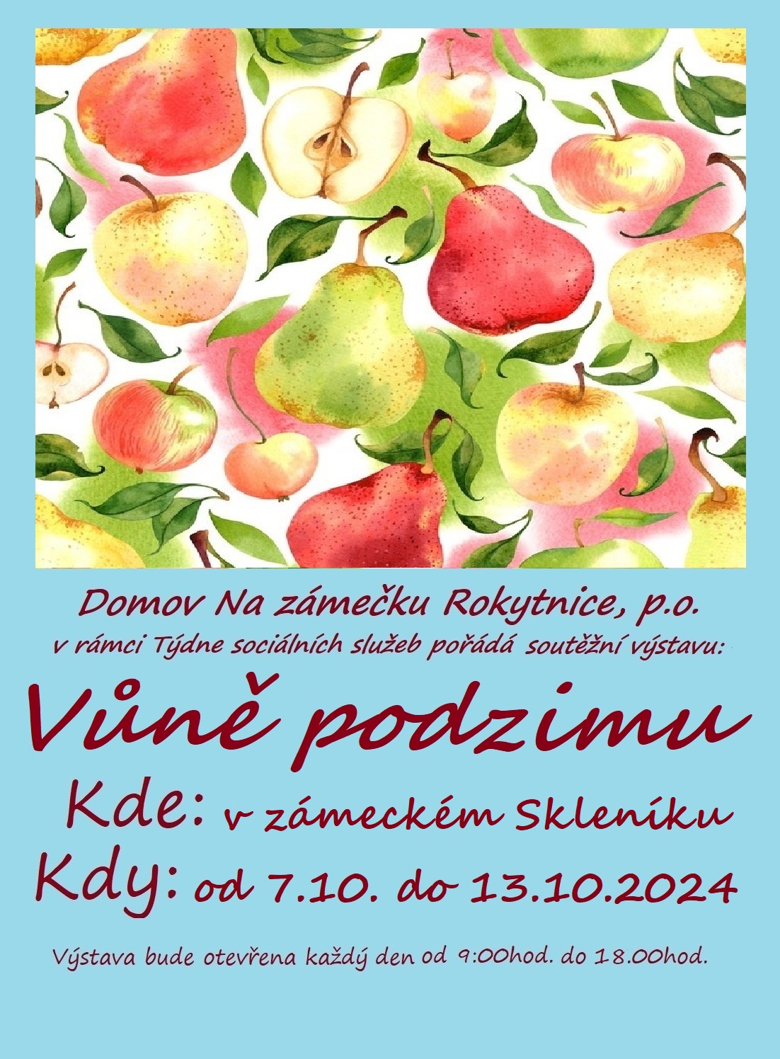 . Soutěžit budou děti ze Základních a Mateřských škol o nejlepší ztvárnění tématu: Jablka a hrušky.