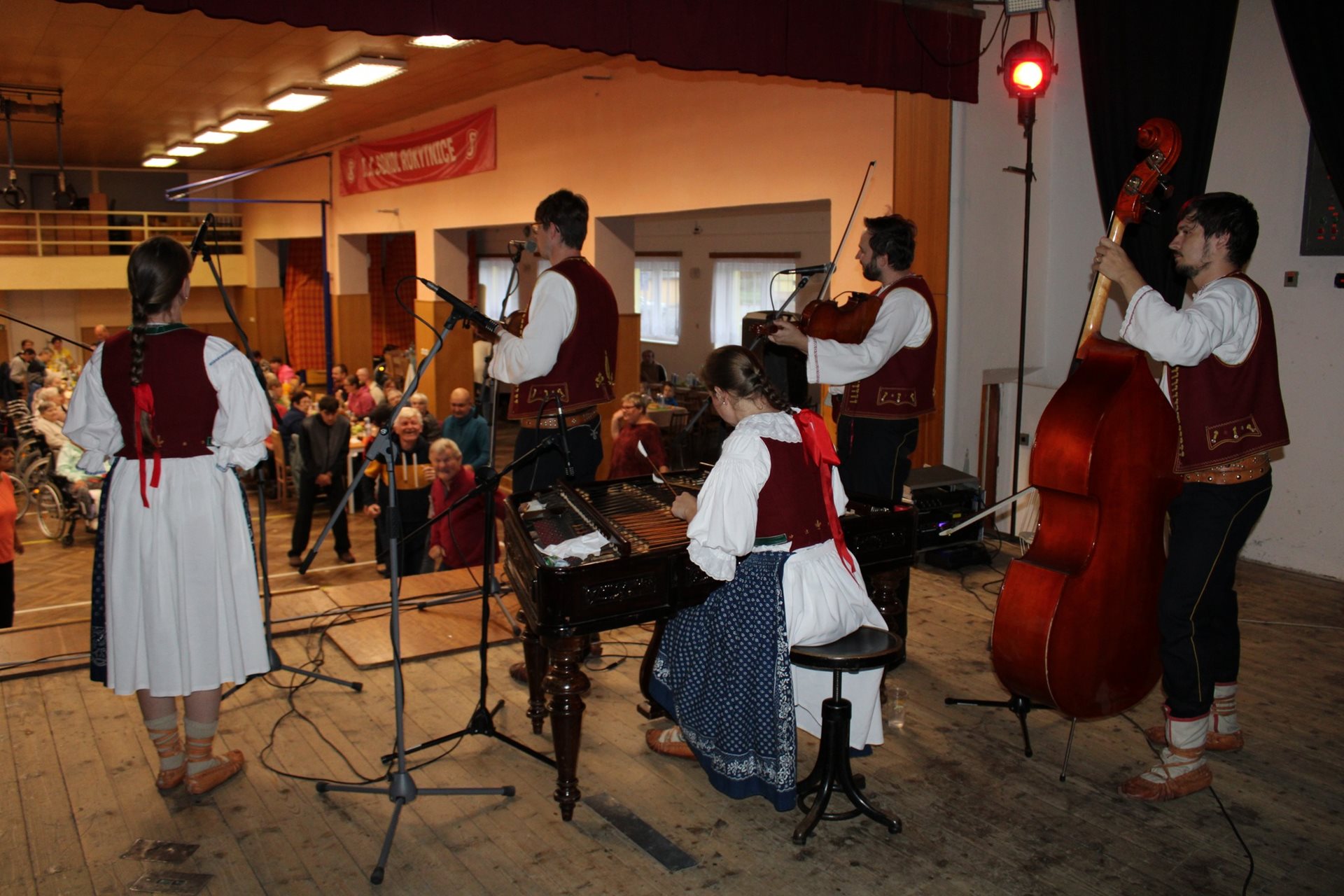 V místní Sokolovně se sešlo cca 150 hostů, aby si společně užili vystoupení Cimbálové muziky Okybača. Krom našich klientů a pracovníků (i těch bývalých) za námi přijeli i přátelé z Nových zámků, ze Šternberka, z Nezamyslic, Kokor a samozřejmě i ze Spolusetkávání Přerov.